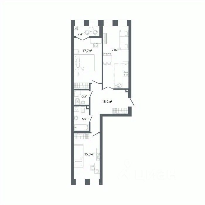 Площадь кухни21,3 м²