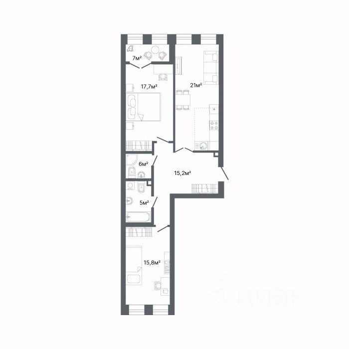 Площадь кухни21,3 м²