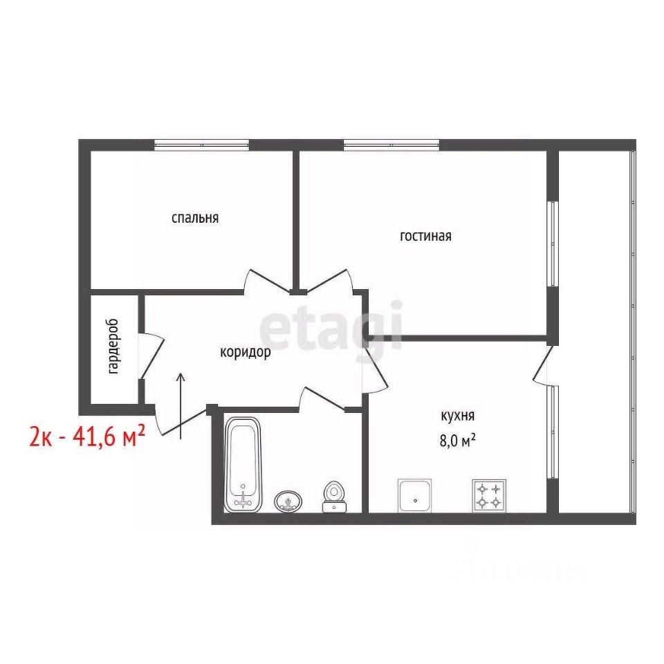 Квартира готова к заселению, кухонный гарнитур остается новым хозяевам.