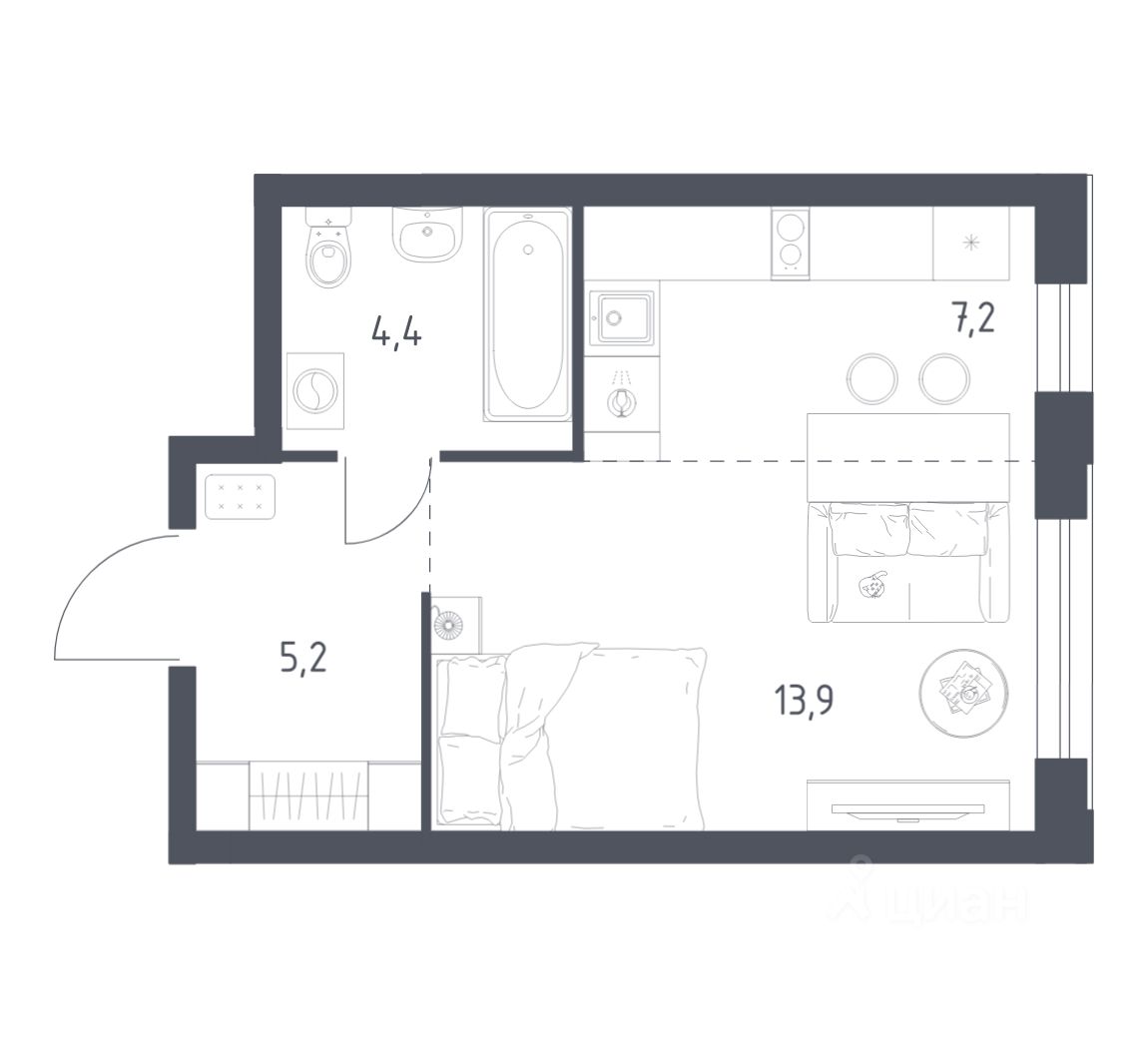 Строим кварталы для жизни с заботой о будущем. Предлагается студия комфорт-класса площадью 30.7 кв.м в корпусе 2КВ на 22-м этаже, в жилом комплексе "Квартал Ауруум".