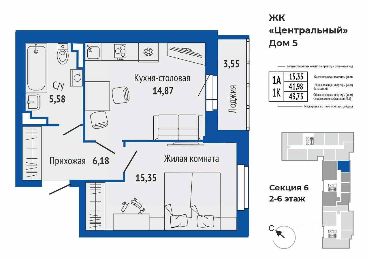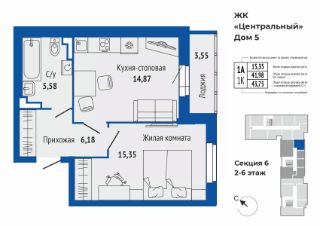 Продаётся 1-комнатная квартира в строящемся доме (Дом 5), срок сдачи: II-кв. 2027, общей площадью 43.71 кв.м., на 2 этаже. Микрорайон "Центральный" - проект комплексной застройки в самом центре Верхней Пышмы на Успенском проспекте в границах улиц Калинина — Кривоусова — Орджоникидзе. Пять многоквартирных домов переменной этажности с обособленными дворами, детскими и спортивными площадками.