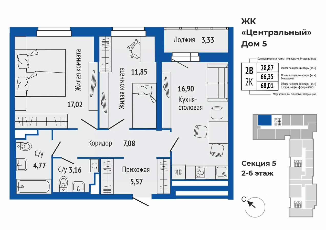 Продаётся 2-комнатная квартира в строящемся доме (Дом 5), срок сдачи: II-кв. 2027, общей площадью 67.7 кв.м., на 3 этаже. Микрорайон "Центральный" - проект комплексной застройки в самом центре Верхней Пышмы на Успенском проспекте в границах улиц Калинина — Кривоусова — Орджоникидзе. Пять многоквартирных домов переменной этажности с обособленными дворами, детскими и спортивными площадками.