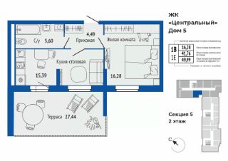 Продаётся 1-комнатная квартира в строящемся доме (Дом 5), срок сдачи: II-кв. 2027, общей площадью 47.52 кв.м., на 2 этаже. Микрорайон "Центральный" - проект комплексной застройки в самом центре Верхней Пышмы на Успенском проспекте в границах улиц Калинина — Кривоусова — Орджоникидзе. Пять многоквартирных домов переменной этажности с обособленными дворами, детскими и спортивными площадками.