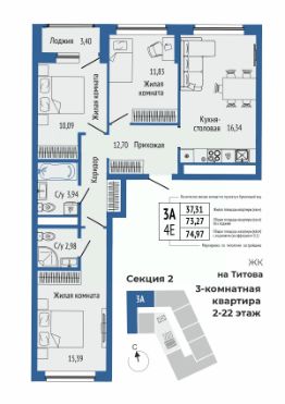 Продаётся 3-комнатная квартира в строящемся доме (Секции 1,2), срок сдачи: I-кв. 2027, общей площадью 76.19 кв.м., на 14 этаже. Новый жилой комплекс "Квартал на Титова" от застройщика "Правобережный" расположен по адресу: г. Екатеринбург, улица Титова.