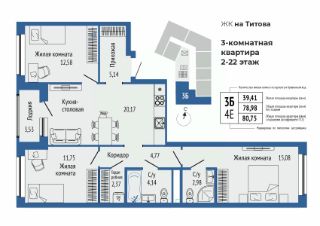 Продаётся 3-комнатная квартира в строящемся доме (Секции 1,2), срок сдачи: I-кв. 2027, общей площадью 82.8 кв.м., на 9 этаже. Новый жилой комплекс "Квартал на Титова" от застройщика "Правобережный" расположен по адресу: г. Екатеринбург, улица Титова.