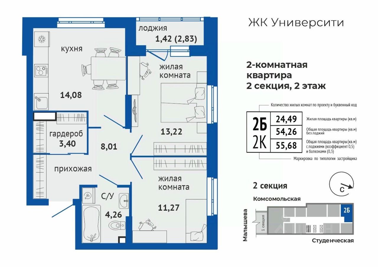 55,68 м²