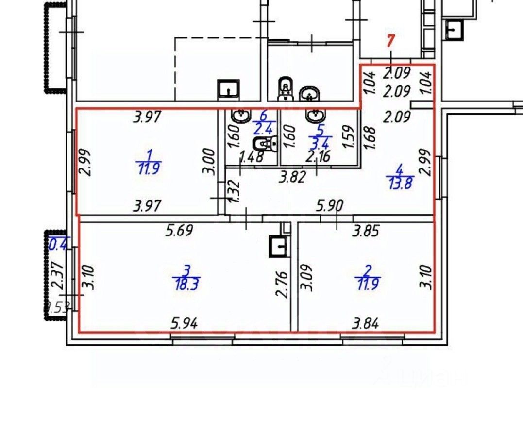 61,7 м²