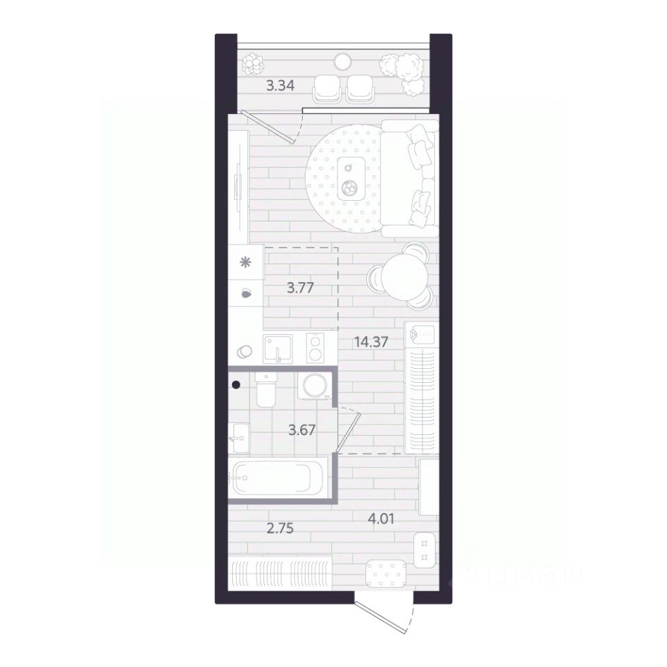 Продаётся студия в строящемся доме (Дом 1.1), срок сдачи: II-кв. 2028, общей площадью 30.24 кв.м., на 16 этаже. Новый жилой комплекс "Тетро" от застройщика "Люди" расположен по адресу: г. Екатеринбург, улица Героев России.