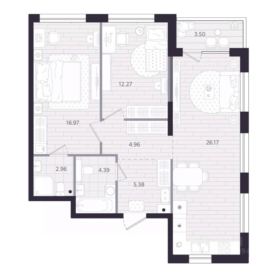 Продаётся 2-комнатная квартира в строящемся доме (Дом 1.1), срок сдачи: II-кв. 2028, общей площадью 74.88 кв.м., на 17 этаже. Новый жилой комплекс "Тетро" от застройщика "Люди" расположен по адресу: г. Екатеринбург, улица Героев России.