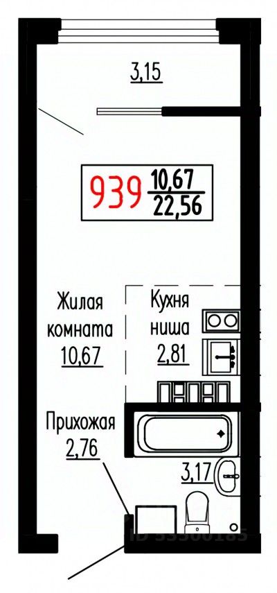 Общая площадь22,7 м²