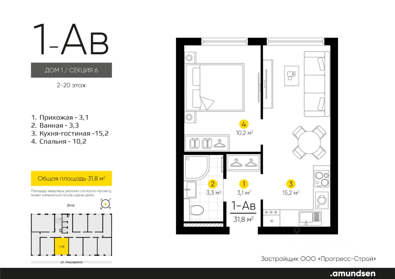 Жилой квартал "Amundsen" - для себя, для семьи, для жизни и развития. Авторская концепция проекта эффектно выделяется в 3 особенностях комплекса: фасады, двор и места общего пользования. AMUNDSEN ПРОЕКТ С ХАРАКТЕРОМ ВЕЛИКОГО ПЕРВООТКРЫВАТЕЛЯ. 4 СЕЗОНА: Двор-трансформер позволяет активно использовать все площадки круглый год. В холодное время года санки, коньки и снежные бои за главную башню. В теплое время источник наполняет двор водой и прохладой. Работают площадки для активных игр и спокойного отдыха. 6 ДЕТСКИХ ПЛОЩАДОК: Мы разделили площадки по возрастным группам для малышей и детей постарше. Качели, аттракционы, водные и активные игры созданы, чтобы познавать мир. 5 ПЛОЩАДОК ДЛЯ СПОКОЙНОГО ОТДЫХА: За счет игры с ландшафтом мы создали приватные зоны, украсили пространство разнотравьем, оживили двор источником. Шум воды, лежаки, беседки, парк места, где ты почувствуешь течение жизни. AMUNDSEN ИДЕАЛЬНОЕ МЕСТО ДЛЯ ЖИЗНИ И РАЗВИТИЯ. - Жилой квартал расположен в экологически чистом районе в окружении двух лесных массивов. - Новые современные школы и детские сады. Спортивный кластер для занятий. - Главный холл пространство для всех. Для самых маленьких игры, для взрослых кафе с ярким дизайном, тихий коворкинг, места для отдыха и светлый, просторный атриум. - Детские площадки "будущего" с оригинальным подходом к созданию игровой среды. - Безопасная территория. Круглосуточная охрана, видеонаблюдение 24/7, электронная система доступа, двор без машин. Застройщик ООО СЗ "Прогресс-Строй", проектная декларация на сайте наш.дом.рф