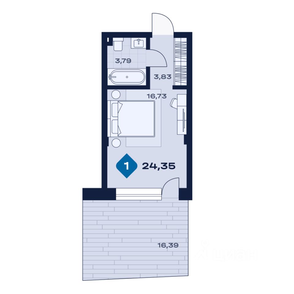 Общая площадь24,35 м²