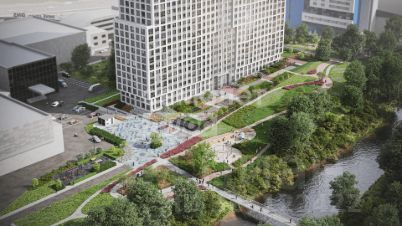 - закрытый зеленый двор с детскими площадками,