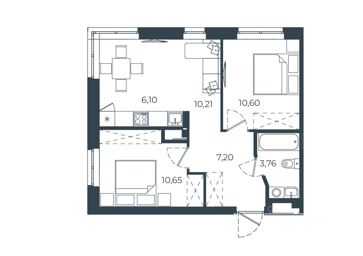 Общая площадь48,52 м²