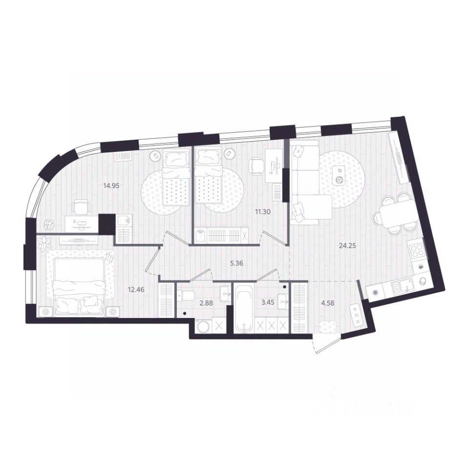 Площадь кухни24,3 м²