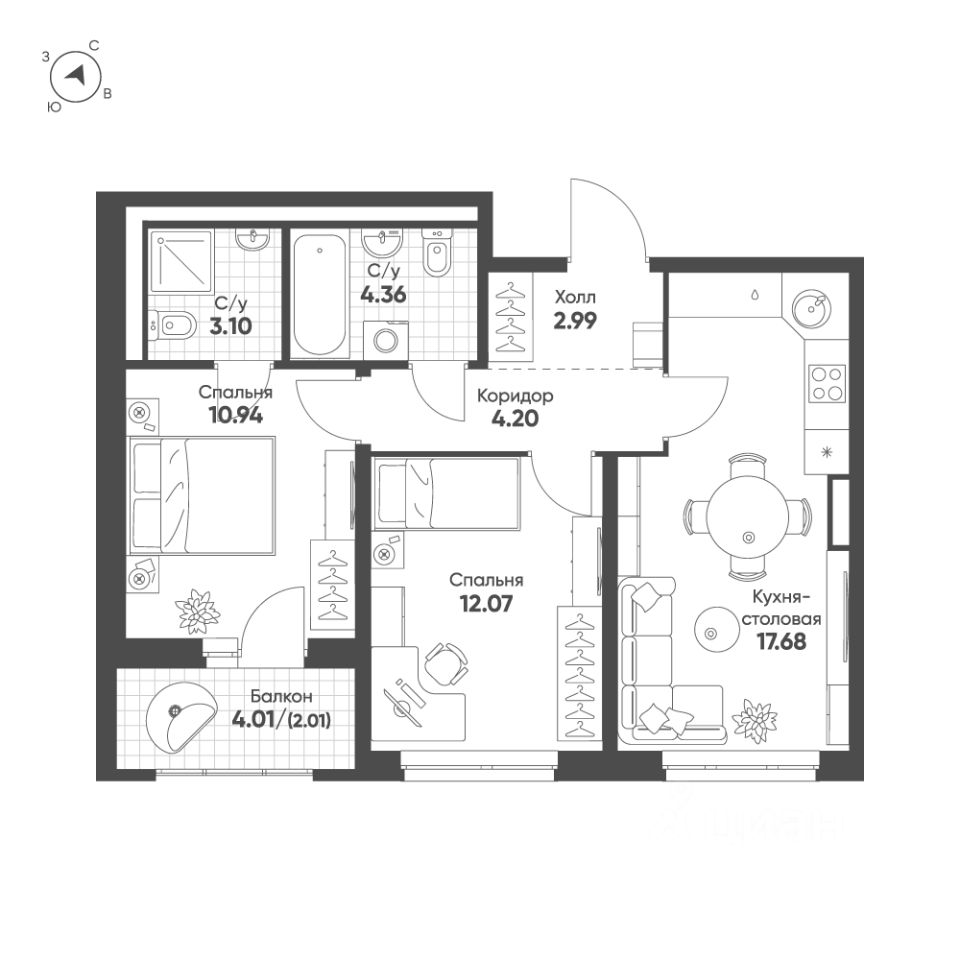 Продаётся 2-комнатная квартира в строящемся доме (Дом 6.2), срок сдачи: I-кв. 2026, общей площадью 57.1 кв.м., на 8 этаже. Новый жилой комплекс "Жилой район "Солнечный"" от застройщика "ГК Эталон" расположен по адресу: г. Екатеринбург, Золотистый бульвар.