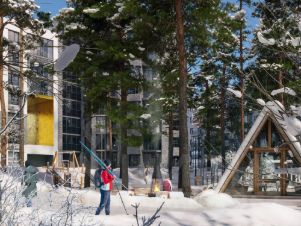 Лес - главный герой квартала. Дома находятся в окружении соснового бора, а их этажность - до 8 этажей - не превышает крон сосен. В новом жилом комплексе большое внимание уделено заботе о сохранении деревьев и реализации специальных программ по высадке новых, чтобы жители наслаждались прекрасной растительностью каждый день.