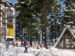 Лес - главный герой квартала. Дома находятся в окружении соснового бора, а их этажность - до 8 этажей - не превышает крон сосен. В новом жилом комплексе большое внимание уделено заботе о сохранении деревьев и реализации специальных программ по высадке новых, чтобы жители наслаждались прекрасной растительностью каждый день.