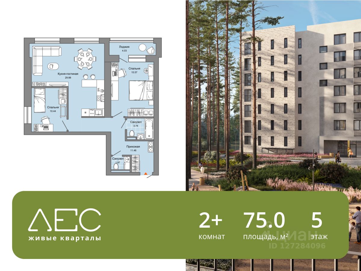 В экологически чистом районе Широкой Речки, всего в 10 км от центра Екатеринбурга, продается 2-комнатная квартира площадью 75.00 кв. м. Квартира находится в 4/1 корпусе жилого комплекса комфорт-класса "ЛЕС" (Застройщик - компания "Железно").