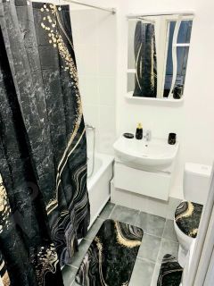 Ремонт от застройщика, вся мебель и техника были приобретены при заселении. Мебель и техника все на фото: кухонный гарнитур, стол, стулья, кровать, большой шкаф в спальне, комоды в коридоре, вся сантехника.