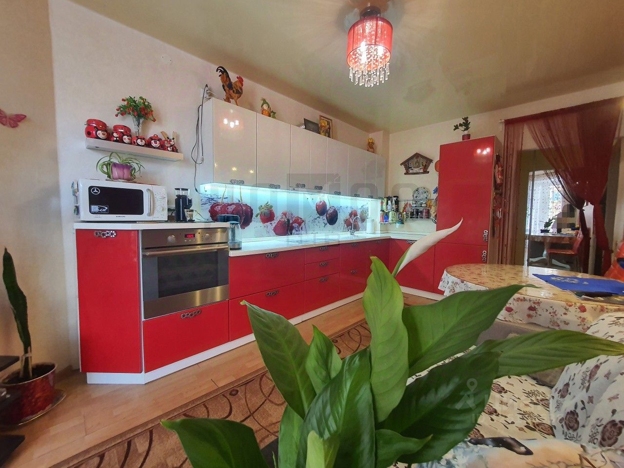 Бльшая часть мебели и техники на фото остаются в подарок новому собственнику. Кухонный гарнитур на кухне оснащён необходимой техникой: духовой шкаф, варочная панель, вытяжка, встроенный холодильник, стиральная машина. В комнате спальный гарнитур (двуспальная кровать, шкаф с распашными дверями, прикроватные тумбочки) , диван, телевизор.В ванной комнате остаётся водонагреватель что позволяет экономить на горячей воде и не зависеть от сезонных отключений. Коммунальные платежи умеренные: зимой 6-7 тыс руб, лето 3-4 тыс руб.
