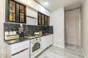 В стоимость квартиры входит: Кухня: кухонный гарнитур с раковиной, смесители, духовой шкаф, варочная поверхность, вытяжка. Ванная комната: Ванна со смесителем, зеркало. Туалетная комната: унитаз.