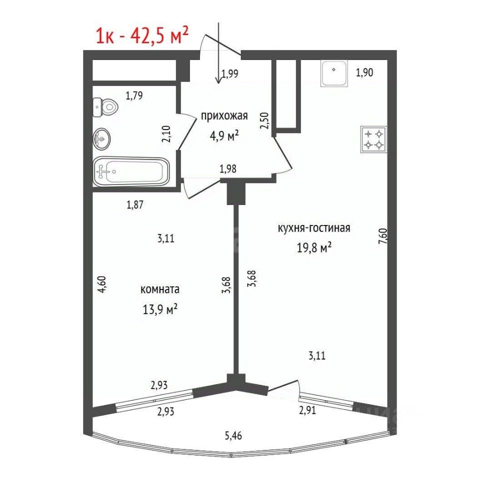 Предлагается в продажу просторная, светлая Однокомнатная( Евро двухкомнатная) квартира. Спальня 13,9м2, кухня гостиная 19,8м2