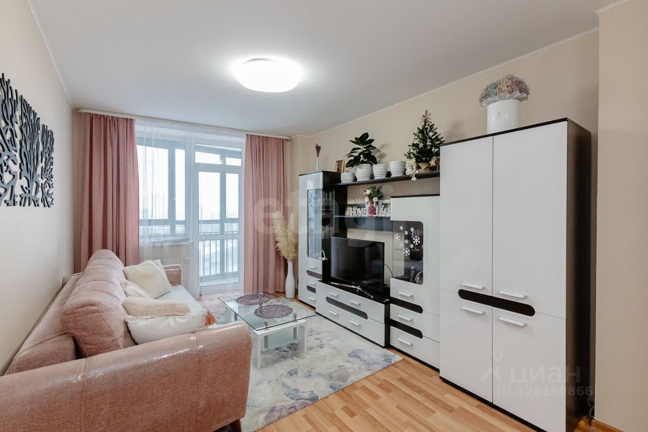 Квартира располагается на видовом 16 этаже, окна выходят в сторону Уктуса, солнечная сторона. Выход с гостиной на лоджию с панорамным остеклением.