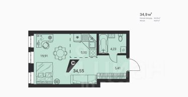 Отличная площадь - 34,9 кв.м., удачная планировка и ЛУЧШАЯ ЦЕНА на рынке!
