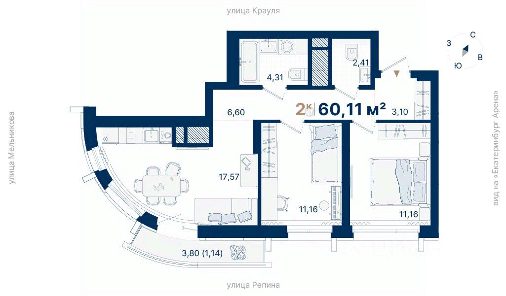 Три башни бизнес-класса на комфортной территории с продуманной инфраструктурой: подземный паркинг, собственный двор, закрытый вход. Локация — рядом с городскими удобствами и транспортом, что делает этот вариант удобным для жизни и инвестиций.