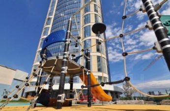 В комплексе — уютные кафе, есть ресторан, продуктовый магазин, шинный отель для хранения колёс. В соседнем доме есть фитнес-клуб. Работает консьерж-сервис.