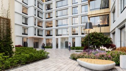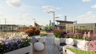 Двор жилого квартала расположен на крыше здания. Местом притяжения станет лаунж-зона с ландшафтным садом и шахматными столиками. Для отдыха в прохладное время года предусмотрены тёплые обогреваемые беседки. Детская зона — это горки, качели, игровые площадки и песочница.