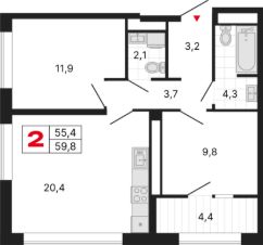 Продаётся квартира в ЖК "Сезоны" Дом 4. 2-комнатная квартира, 59.84 м², 250.