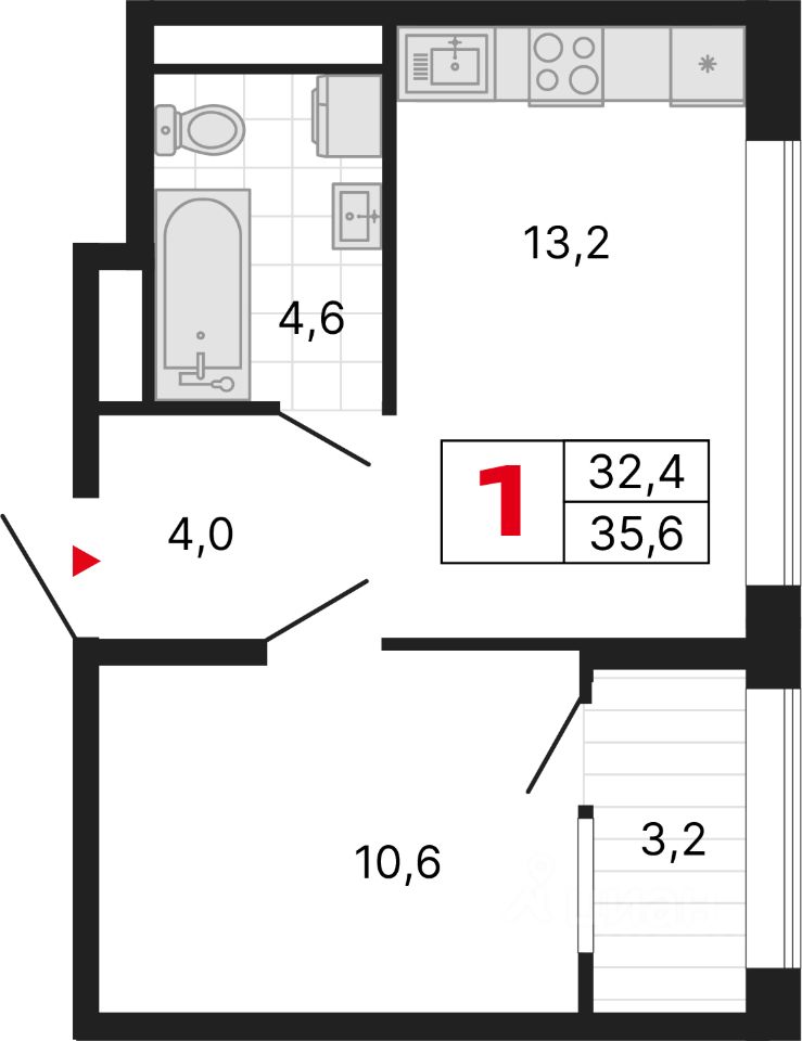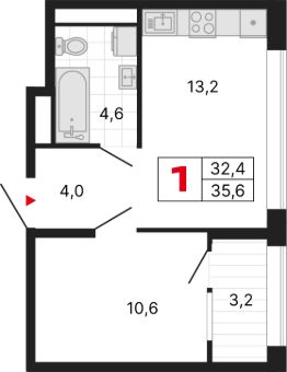Продаётся квартира в ЖК "Сезоны" Дом 4. 1-комнатная квартира, 35.63 м², 258. Стоимость указана с учетом чистовой отделки.