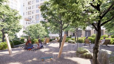 Благоустройство и отдых: Во дворах — детские и спортивные площадки, зоны для прогулок и отдыха. Ландшафтный дизайн с озеленением делает территорию уютной и живой круглый год.