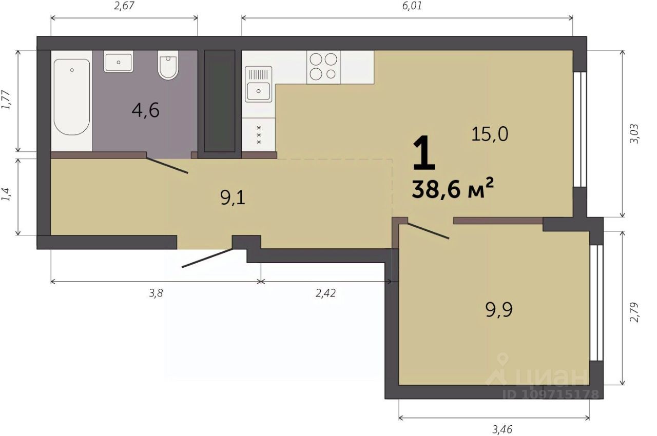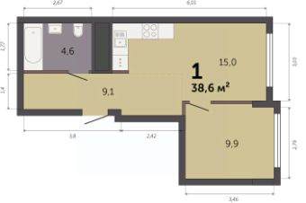38,6 м²