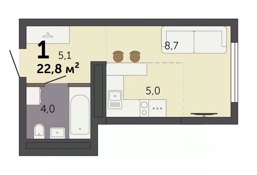22,8 м²