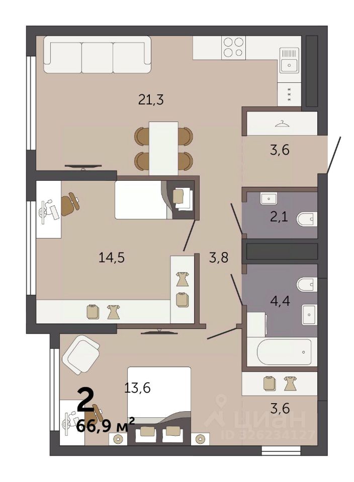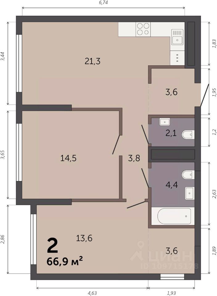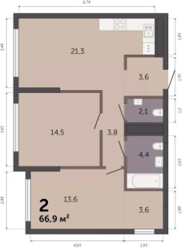 66,9 м²