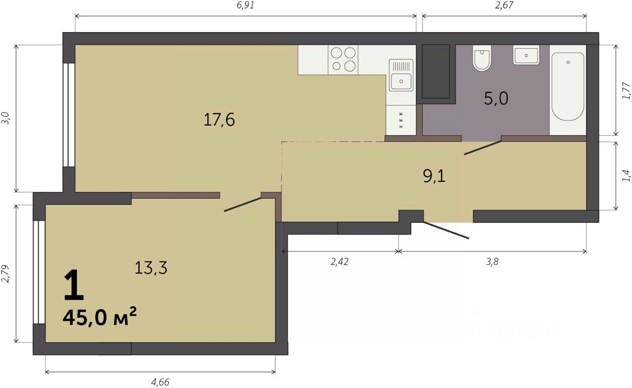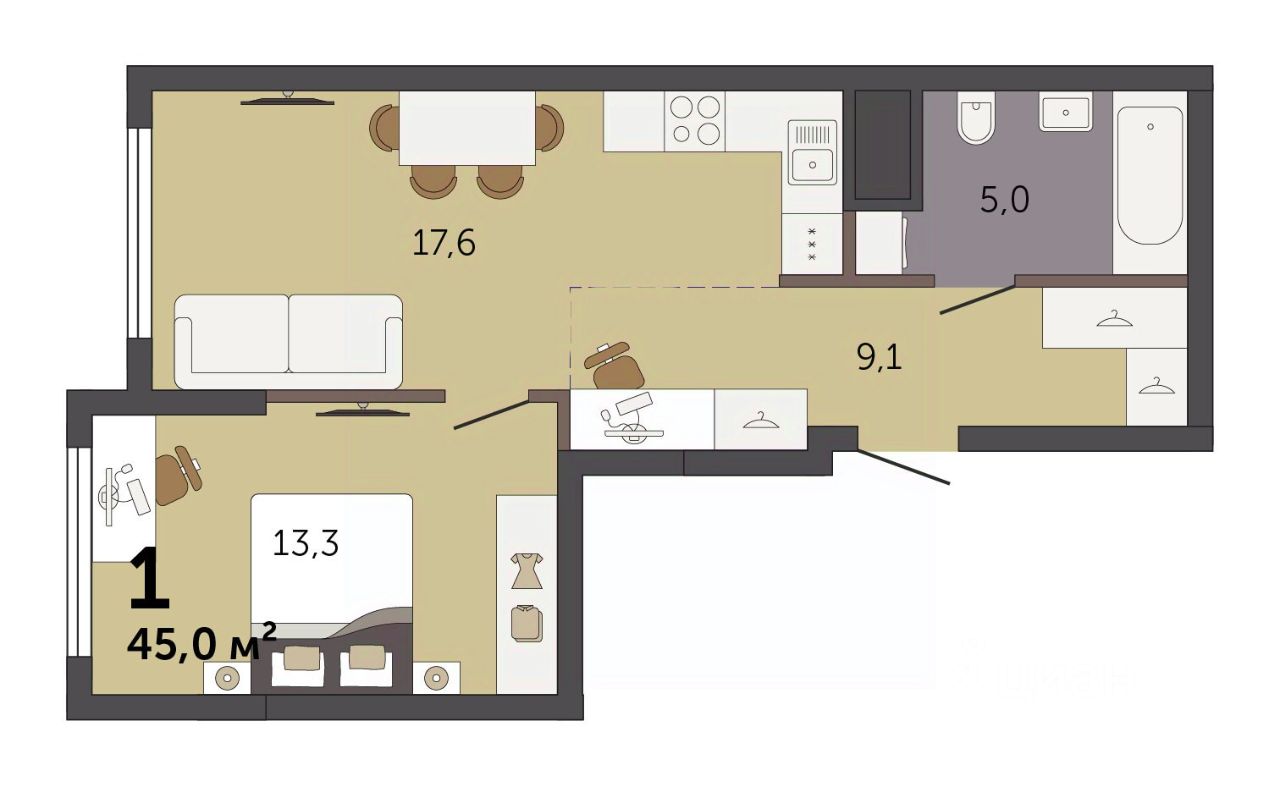 Продаётся 1-комнатная квартира в строящемся доме (Секция 1.1), срок сдачи: I-кв. 2028, общей площадью 45 кв.м., на 10 этаже. Новый жилой комплекс "Парк Культуры" от застройщика "СЗ Новый Дом" расположен по адресу: г. Екатеринбург, Базовый переулок.