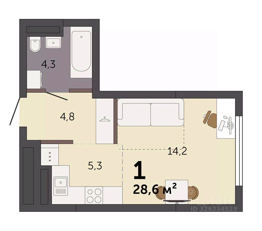 28,6 м²