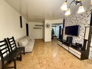 Продается светлая 4-к. квартира с оборудованной кухней, мебелью (шкафы, спальные места) и бытовой техникой (холодильник, варочная панель, вытяжка, телевизор, музык.центр, стиральная машина).