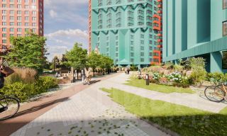 На первых этажах жилых домов разместятся магазины, кафе, ресторан, кондитерская, фитнес-центр, встроенный детский садик. Для удобства автовладельцев будет построен многоуровневый наземный паркинг.