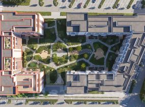 Между собой кварталы соединены широким пешеходным бульваром с игровыми и спортивными площадками, деревьями и кустарниками, привезенными из европейских питомников. Всего более 30 видов растений.
