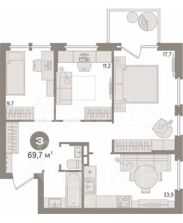 69,7 м²