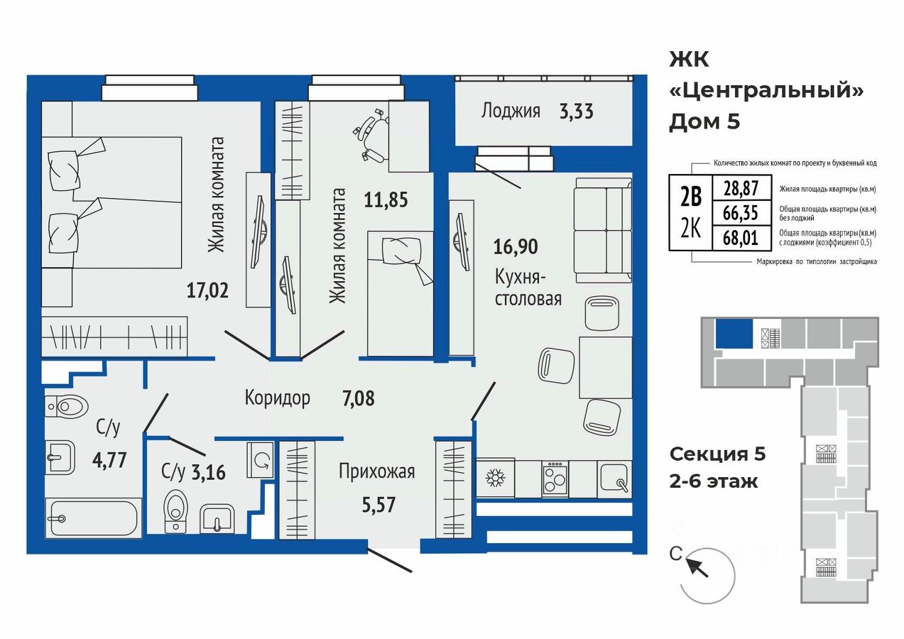 Продается 2-к квартира в жилом комплексе Центральный 5