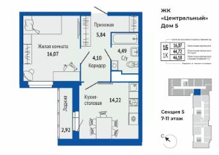 Продается 1-к квартира в жилом комплексе Центральный 5
