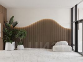 Авторы проекта гармонично совместили в оформлении природные элементы и современный дизайн. Волнообразные очертания на стенах вдохновлены силой ветра и движением воды. Скруглённые углы подчеркивают элегантный силуэт, а контрастная палитра акцентов и контурная подсветка верхних этажей создают выразительный архитектурный образ.