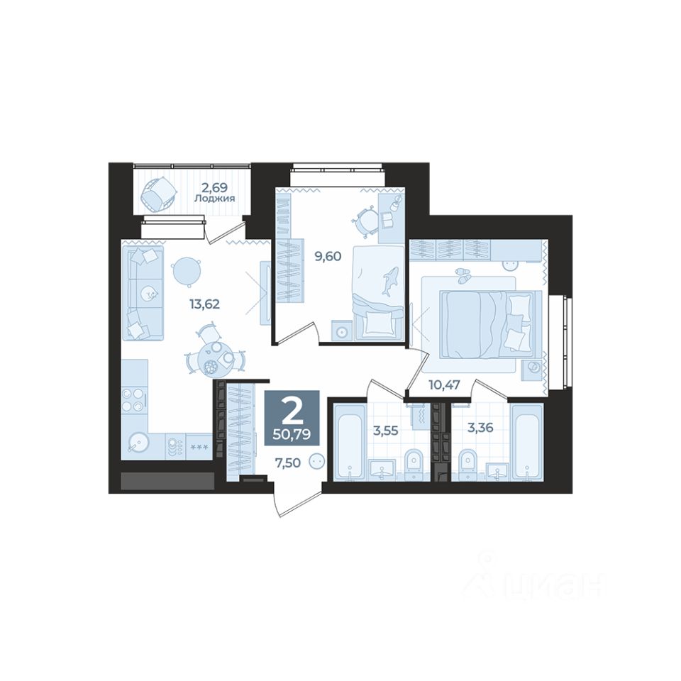 Общая площадь50,79 м²