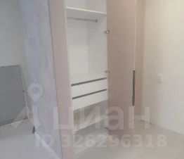 В комнате построен двойной шкаф-купе, на три створки с каждой стороны, который служит как гардеробной со стороны коридора, так и шифоньером в спальной части комнаты.