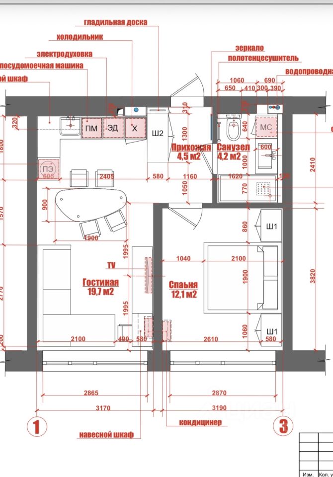 19,7 м²